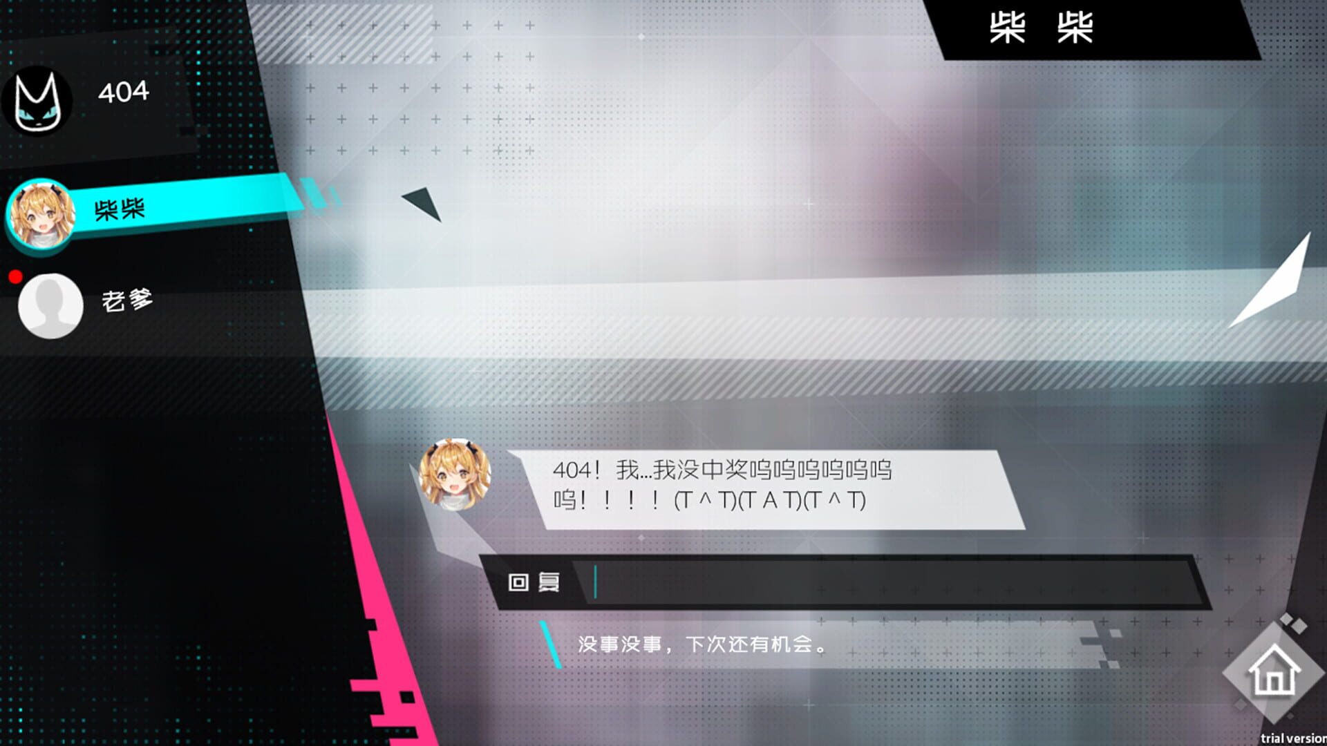 《妄想破绽》是一款文字冒险(AVG)游戏,数十万字精彩原创剧情,将带给大家一段近未来架空科技都市的幻想冒险体验。游戏中,玩家将扮演普通高中生与顶级黑客的双重身份。有一天“我”抱着玩笑心理在网络上虚构了一个不存在的假人,不料却因此带来了惊天巨变……