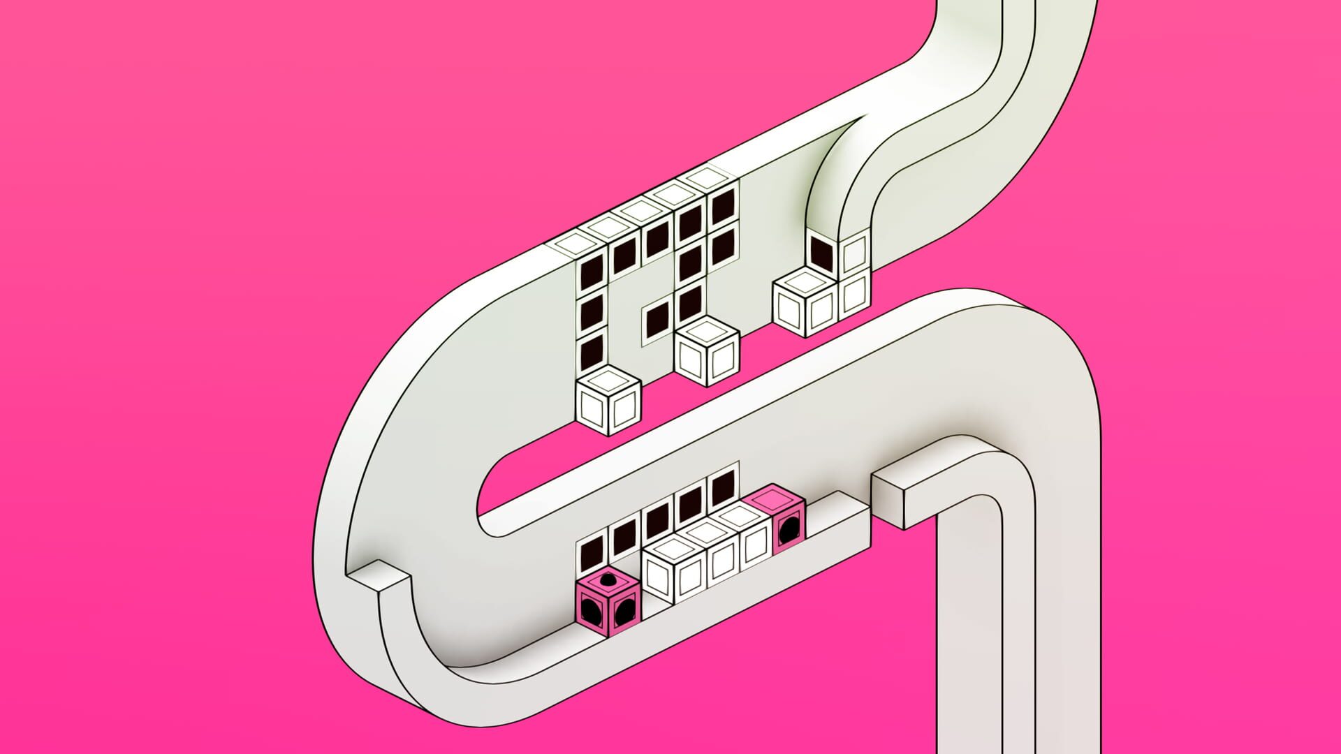 Una estética innovadora del dibujo técnico se fusiona con unos desafíos lógicos de diseño elegante en este juego minimalista de rompecabezas con un toque de color.